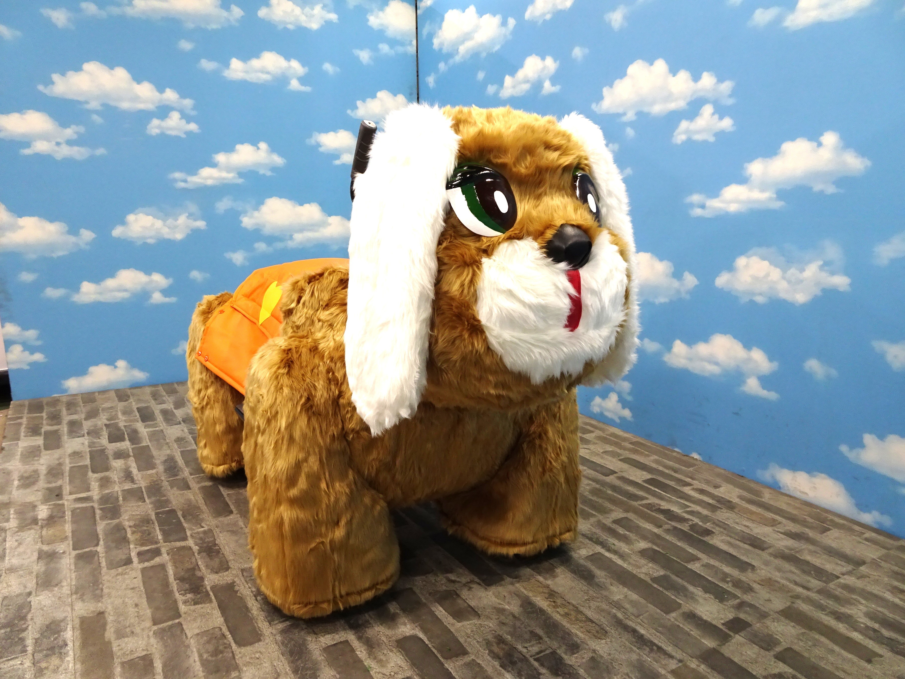 ぬいぐるみを纏ったソフトな歩行式バッテリーカーです。