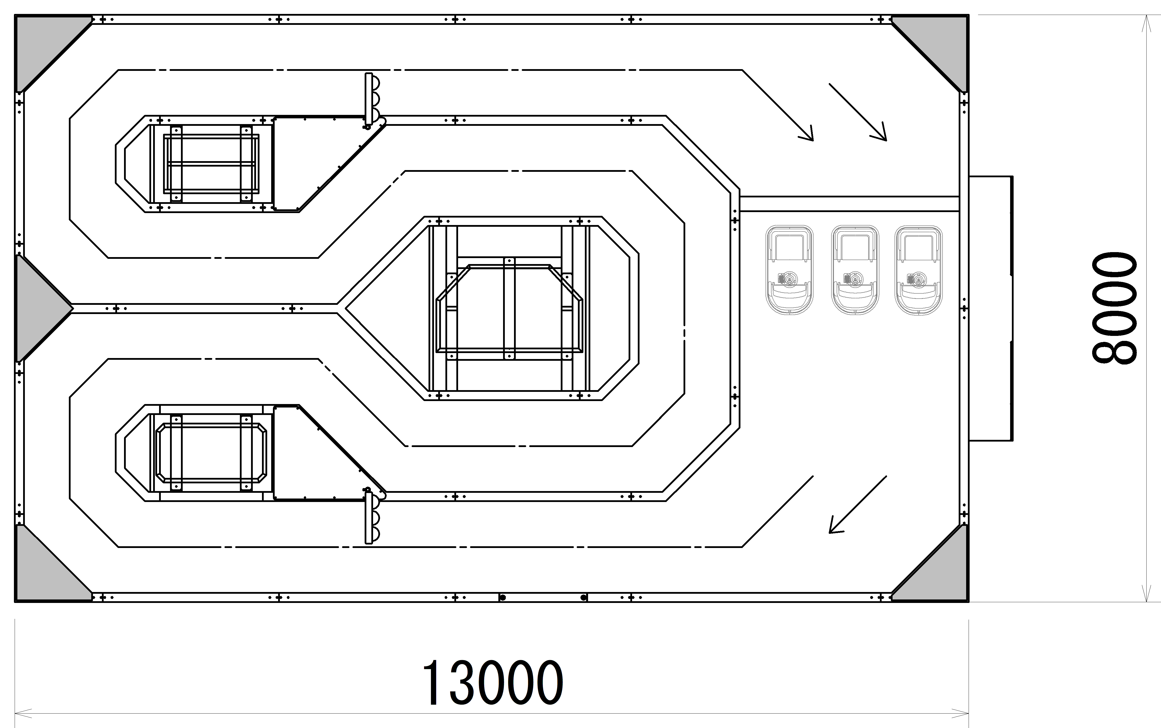 | タイヤ(3輪) | ゴム車輪 (前後輪)Ф180X44 |
